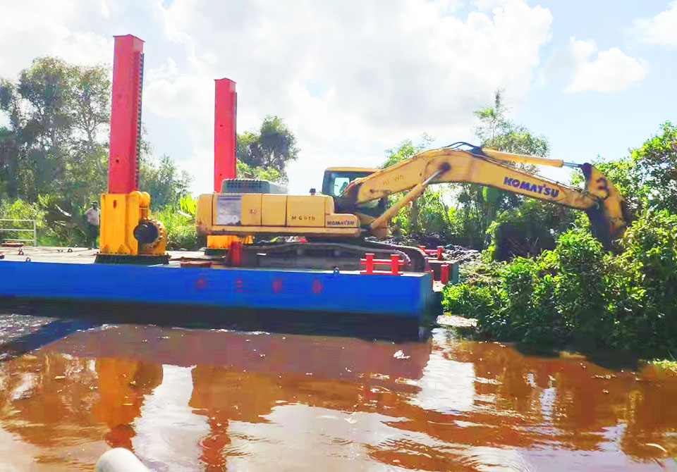 挖機平臺用于雜亂的河道,復雜的水域清淤,適應性強,廣泛用于清淤或打樁等作業。采用 CCS 船用鋼板和 CCS 船用涂料,船體堅固耐用,船舶設計研究院圖紙分體式結構,更方便快捷的運輸和組裝建立良好的工作和生活區域,適合長期作業和生活。
